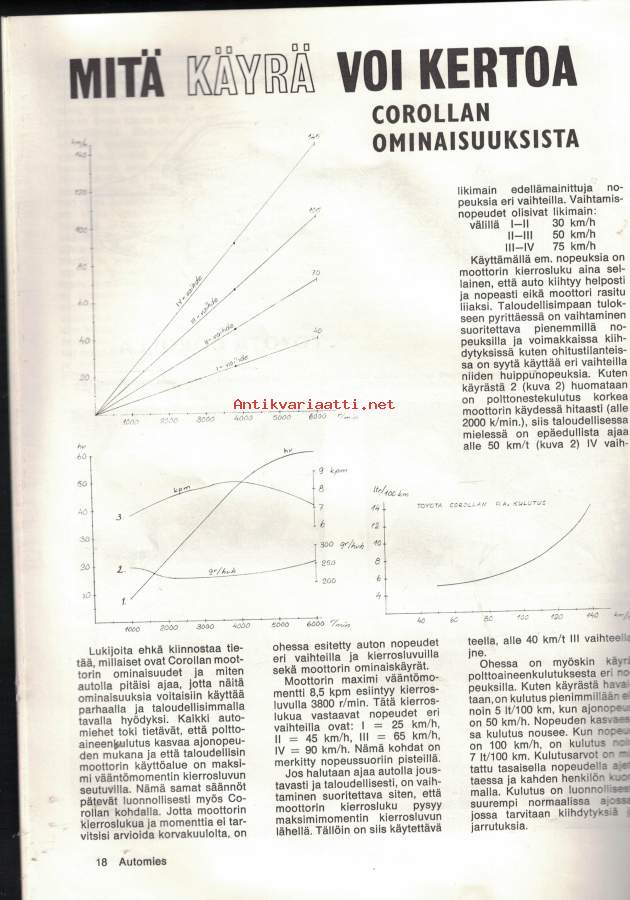 Automies 1975 N:o 3. Ystävällinen auto on iso Corolla. Koesoutu: Terhi 375. Auto kuin vene on Citroen 2 CV. Asenna itse: puristukset puntariin.