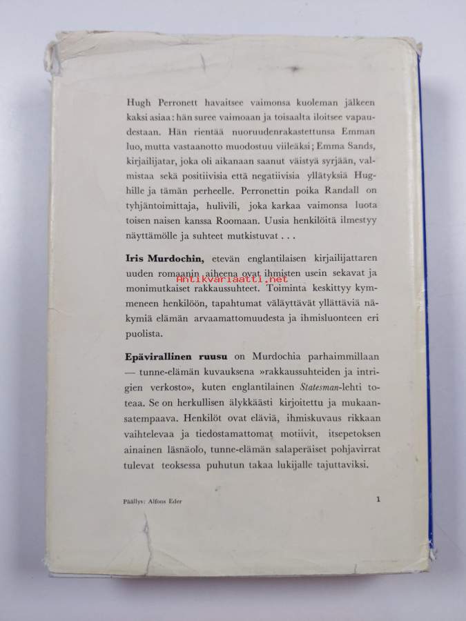 Hyvä. Pienoista nuhruisuutta kansissa, selkämyksessä hieman vinoutta, selkämyksessä yksi aivan kevyt lukutaite. Kansipaperin kunto: joitain repeämiä/kulumaa