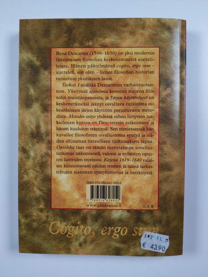 Teokset 1, Yksityisiä ajatelmia ; Järjen käyttöohjeet ; Metodin esitys ; Optiikka ; Kirjeitä 1619-1640