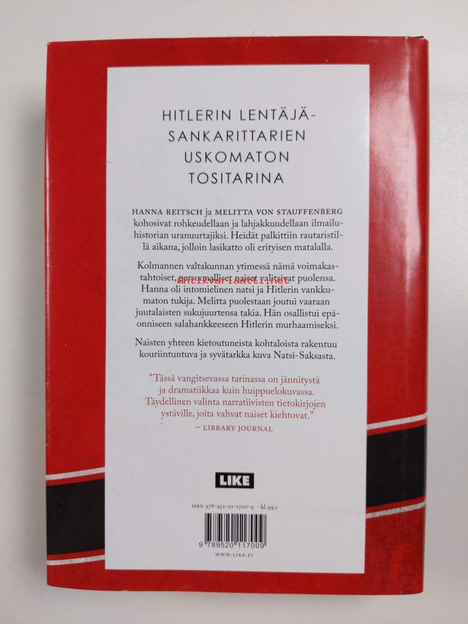 Muu(t) tekijä(t): Kirsi LuomaAlkuteos: The women who flew for HitlerAsiasanat: historia, naiset, sotahistoria, toinen maailmansota, lentäjät, sotilaslentäjät, kolmas valtakunta