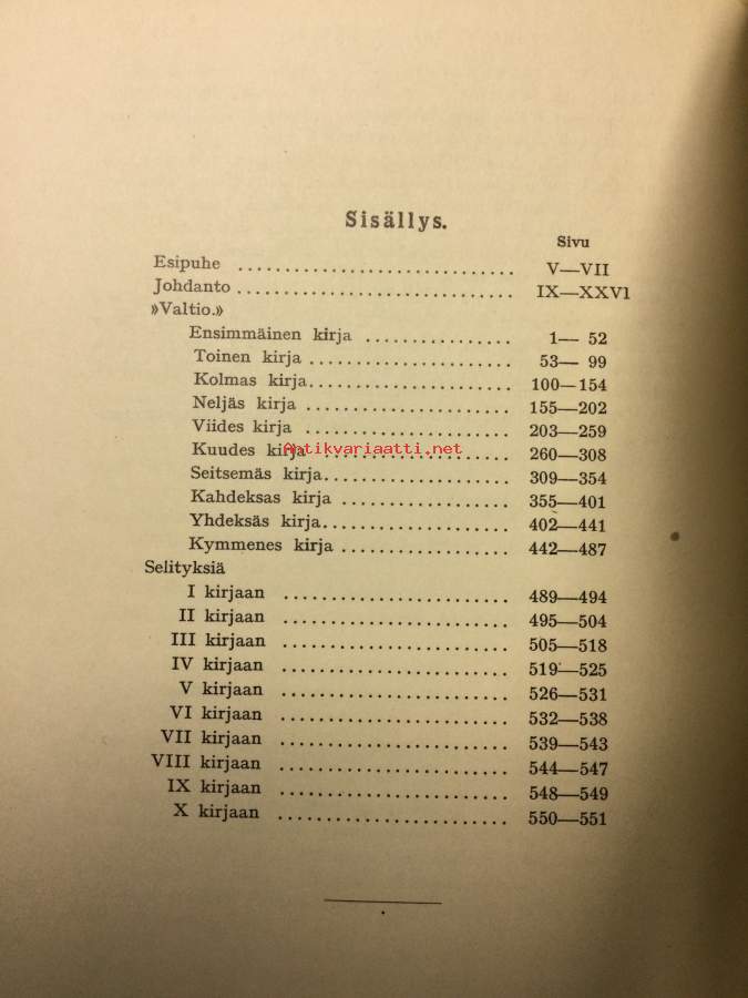 Valtio-teoksessa on poliittista filosofiaa, etiikkaa ja ideaoppia ja Platon myös kuvailee täydellistä, oikeudenmukaista ihannevaltiota.