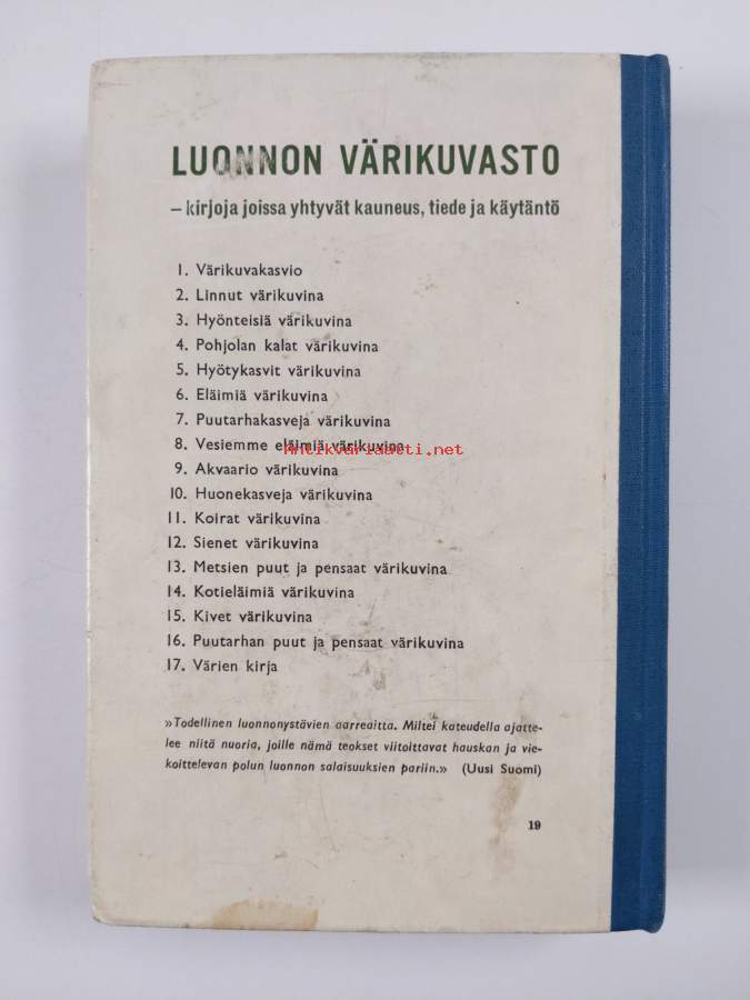 Hyvä. Tarkempi kuntoluokka: K3- ; Pientä kulumaa kansissa, selkämyksessä hieman vinoutta, sidos hieman näkyvissä paikoitellen