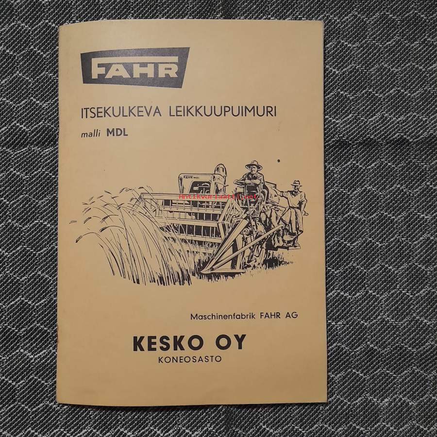 Fahr MDL itsekulkeva leikkuupuimuri -käyttöohjekirja 1960