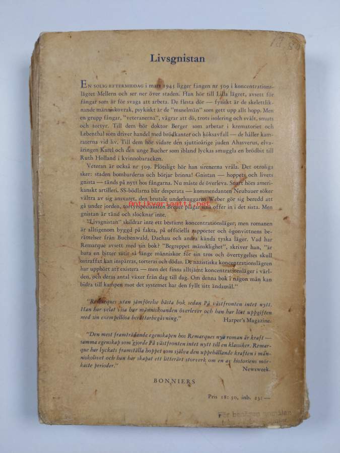 Tyydyttävä. Tarkempi kuntoluokka: K2- ; Jonkin verran repeämää kansissa, selkämyksessä hieman vinoutta. etukannessa ja joillakin ensimmäisillä sivuilla läikkää ja aaltoilua