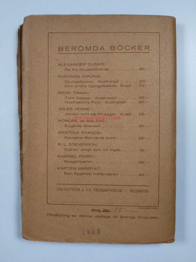 Tyydyttävä. Jonkin verran repeämää selkämyksessä, selkämyksessä hieman vinoutta, selkämyksessä lukutaittumaa, sidos löystynyt ja näkyvissä