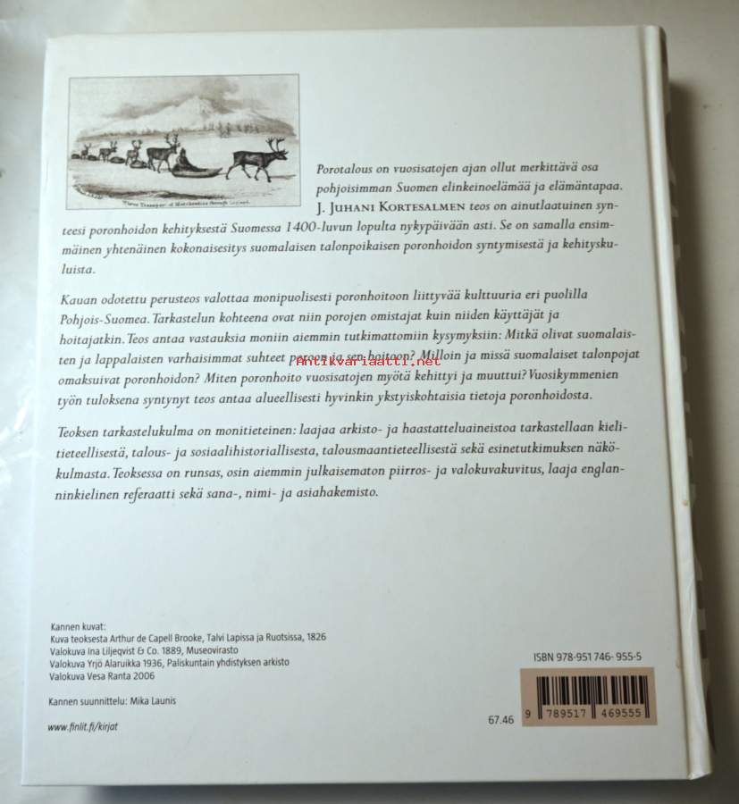 Porotalous on vuosisatojen ajan ollut merkittävä osa pohjoisimman Suomen elinkeinoelämää ja elämäntapaa. J. Juhani Kortesalmen teos on ainutlaatuinen synteesi poronhoidon kehityksestä Suomessa 1400-luvun lopulta nykypäivään asti. Se on samalla ensimmäinen yhtenäinen kokonaisesitys suomalaisen talonpoikaisen poronhoidon syntymisestä ja kehityskuluista. Kauan odotettu perusteos valottaa monipuolisesti poronhoitoon liittyvää kulttuuria eri puolilla Lappia. Tarkastelun kohteena ovat niin porojen omistajat kuin niiden käyttäjät ja hoitajatkin. Teos antaa vastauksia moniin aiemmin tutkimattomiin kysymyksiin: Mitkä olivat suomalaisten ja lappalaisten varhaisimmat suhteet poroon ja sen hoitoon? Milloin ja missä suomalaiset talonpojat omaksuivat poronhoidon? Miten poronhoito vuosisatojen myötä kehittyi ja muuttui? Vuosikymmenien työn tuloksena syntynyt teos antaa alueellisesti hyvinkin yksityiskohtaisia tietoja poronhoidosta. Teoksen tarkastelukulma on monitieteinen: laajaa arkisto- ja haastatteluaineistoa tarkastellaan kielitieteellisestä, talous- ja sosiaalihistoriallisesta, talousmaantieteellisestä sekä esinetutkimuksen näkökulmasta. Teoksessa on runsas, osin aiemmin julkaisematon piirros- ja valokuvakuvitus.