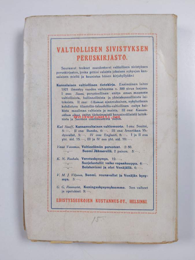 Hyvä. Tarkempi kuntoluokka: K3- ; Hieman rispaantumaa reunoilla ja kulmissa, selkämyksessä hieman vinoutta