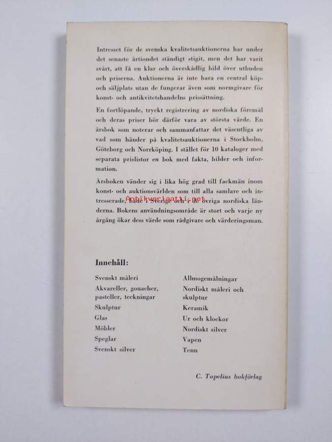 Muu(t) tekijä(t): Christer Topelius, Ann-Sofi TopeliusSarja: Svenska auktionspriser årg. 2Asiasanat: antiikkiesineet, luettelot, hinnastot, taideteokset, hinnoittelu, huutokauppa