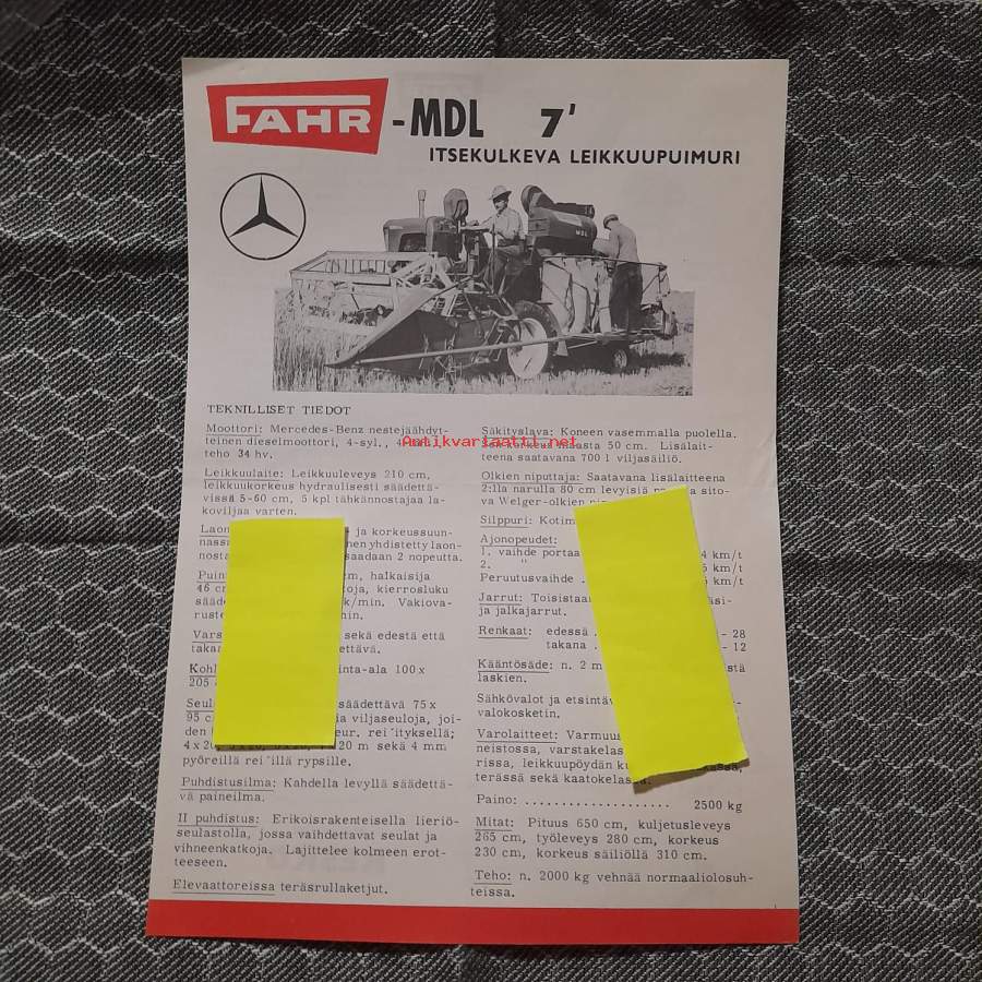Fahr MDL 7 itsekulkeva leikkuupuimuri myyntiesite