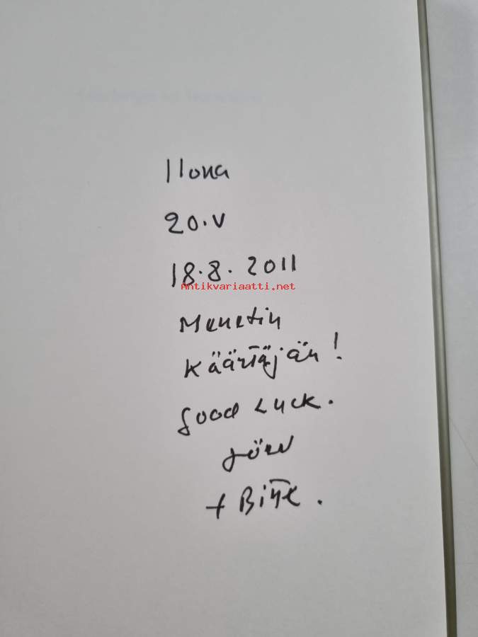 Hyvä. Tarkempi kuntoluokka: K3+ ; Hieman käytön jälkeä kansissa, selkämyksessä aavistus vinoutta. Kansipaperin kunto: pientä kulumaa / signeerattu etunimillä Jörn ja Bitte