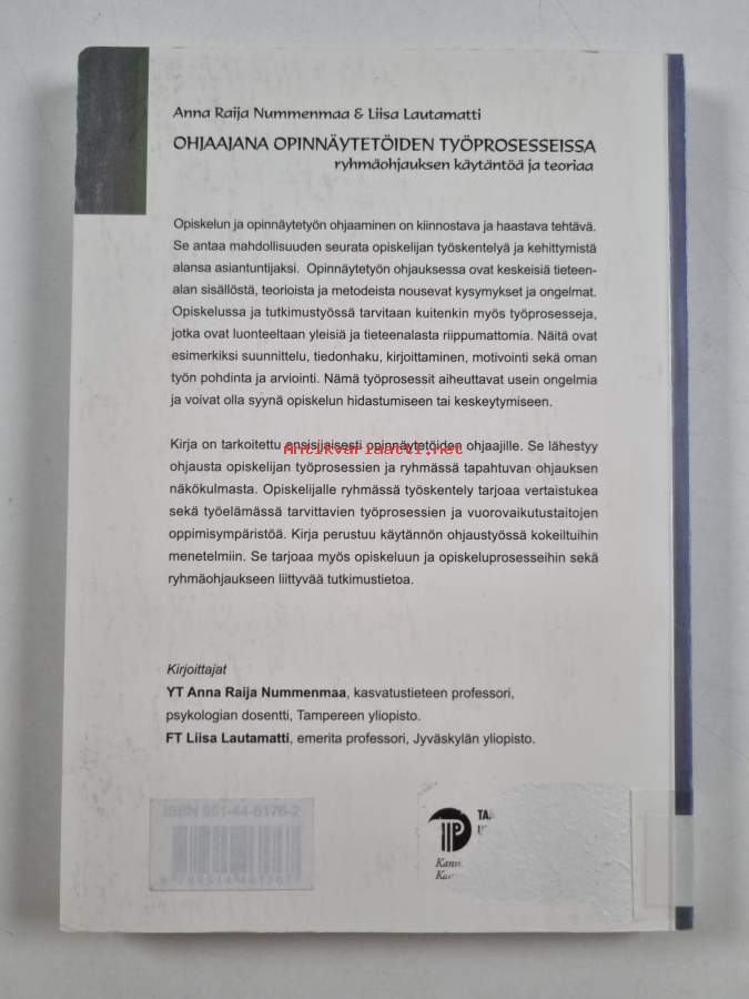 Merkinnät: omistajamerkintä (leima)Asiasanat: tutkimus, koulutus, korkeakouluopetus, tutkijat, opetus, ryhmätyö, opiskelutekniikka, opiskelijat, tieteellinen kirjoittaminen, tiede, korkeakouluopiskelu, tutkimustyö, opinnäytteet, opinto-ohjaus, ohjaus, työprosessit, ryhmät, tiedonhankinta, tutkielmat, research, ohjaus (neuvonta ja opastus), Science, dissertations, academic, Learning, students, lärdomsprov, grupparbete, training, teaching, högskoleundervisning, handledning, studieteknik, research reports, Group Processes, research workers, handledare, Dissertations, Academic as Topic, opetusryhmät, arbetsprocesser, vetenskapligt skrivande