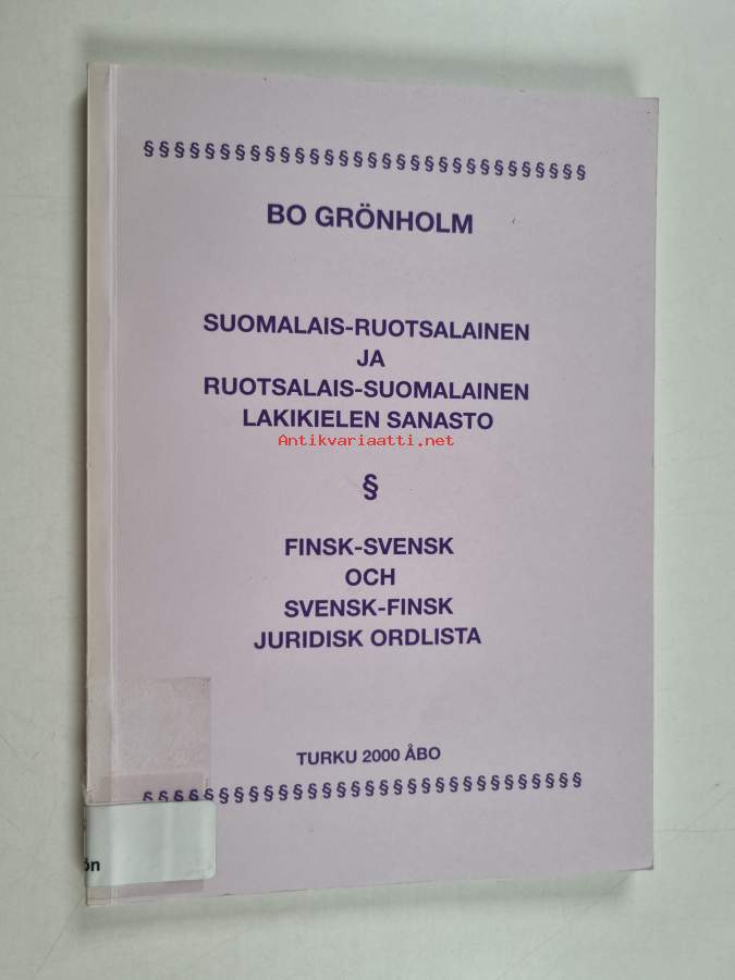 Suomalais-ruotsalainen ja ruotsalais-suomalainen lakikielen sanasto Finsk-svensk och svensk-finsk juridisk ordlista