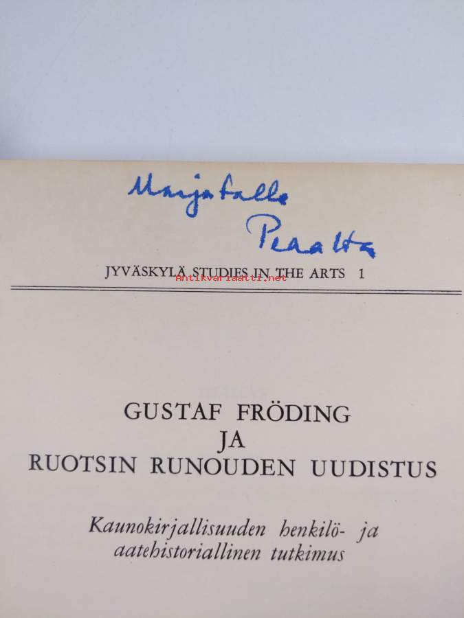 Gustaf Fröding ja Ruotsin runouden uudistus : kaunokirjallisuuden henkilö- ja aatehistoriallinen tutkimus (signeerattu, tekijän omiste)