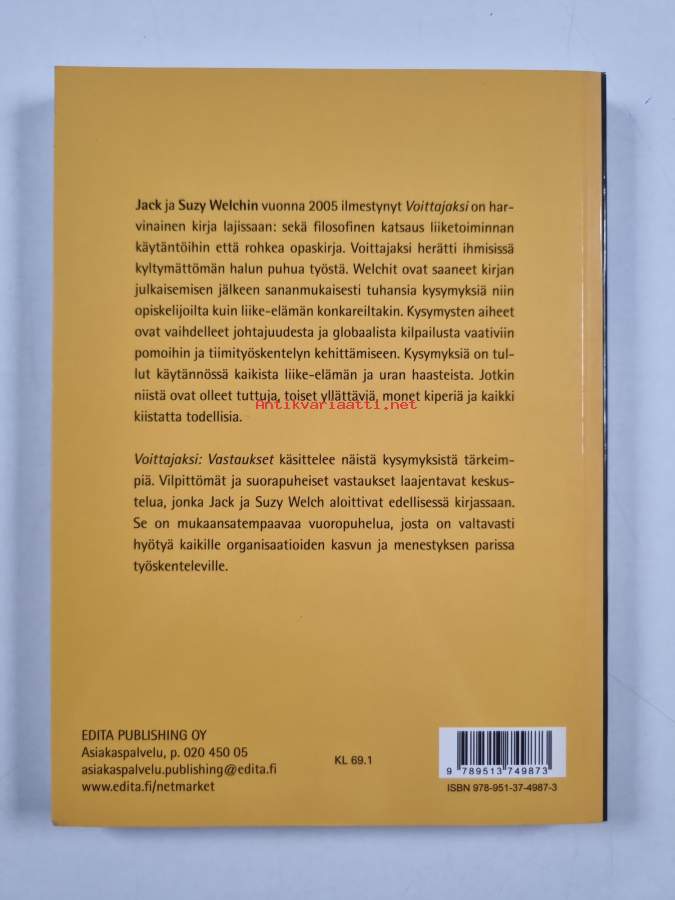 Muu(t) tekijä(t): Maarit Tillman, Suzy WelchAlkuteos: Winning : the answers : confronting 74 of the toughest questions in business todayAsiasanat: menestyminen, yritykset, johtaminen, johtajat, johtajuus, yrittäjyys, yritysstrategiat, urakehitys, henkilöstöjohtaminen, organisaatiot, perheyritykset, muutosjohtaminen, kilpailu (toiminta)