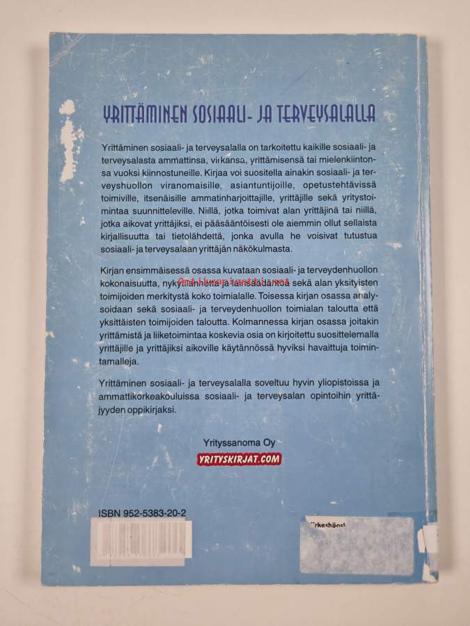 Merkinnät: omistajamerkintä (leima)Asiasanat: yritystoiminta, sosiaaliala, yksityinen sektori, terveysala, företagsverksamhet, health services, Entrepreneurship, social work, hälsovårdsbranschen, socialsektorn, privata sektorn, Private Sector