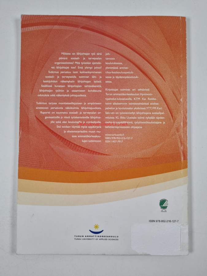 Muu(t) tekijä(t): Kari Salonen, Ilkka UusitaloMerkinnät: omistajamerkintä (leima)Sarja: Turun ammattikorkeakoulun tutkimuksia 31Asiasanat: johtaminen, johtajat, johtajuus, työyhteisöt, sosiaalityö, terveyspalvelut, terveydenhuolto, roolit, osaaminen, sosiaalihuolto, sosiaalipalvelut, toimintaympäristö, sosiaaliala, työnjohto, työnkuva, päälliköt, terveysala, lähijohtaminen, osaamistarve, kyvykkyys, esihenkilöt