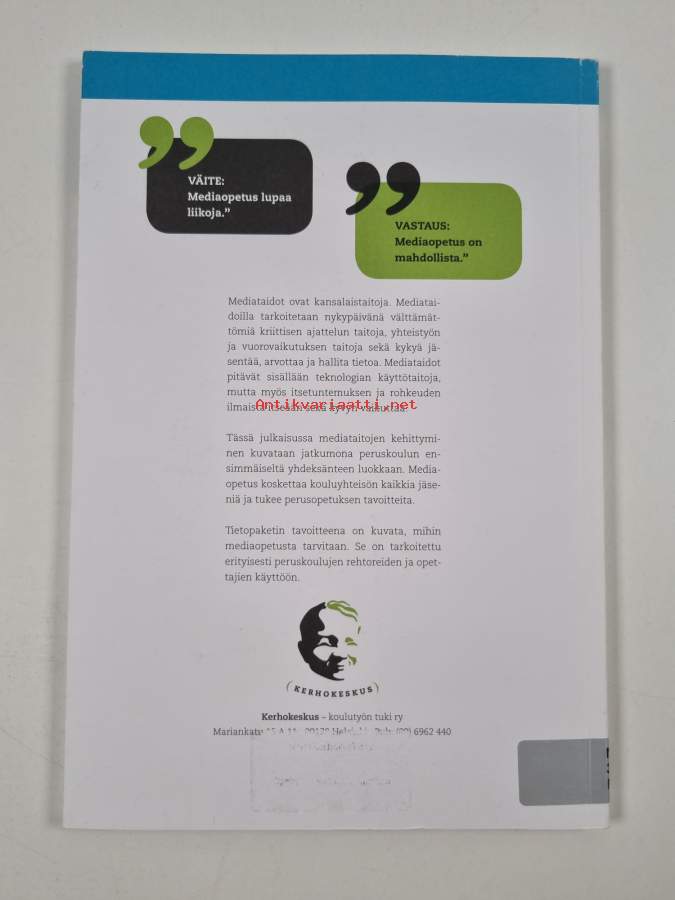 Muu(t) tekijä(t): Ritva-Sini MerilampiMerkinnät: omistajamerkintä (leima)Asiasanat: peruskoulu, opetus, perusopetus, medialukutaito, viestintäkasvatus, mediakasvatus, lapset (ikäryhmät), barn (åldersgrupper), grundläggande utbildning, undervisning, grundskolan, mediefostran, medieläsfärdighet, kommunikationsfostran, mediataidot, mediekompetens