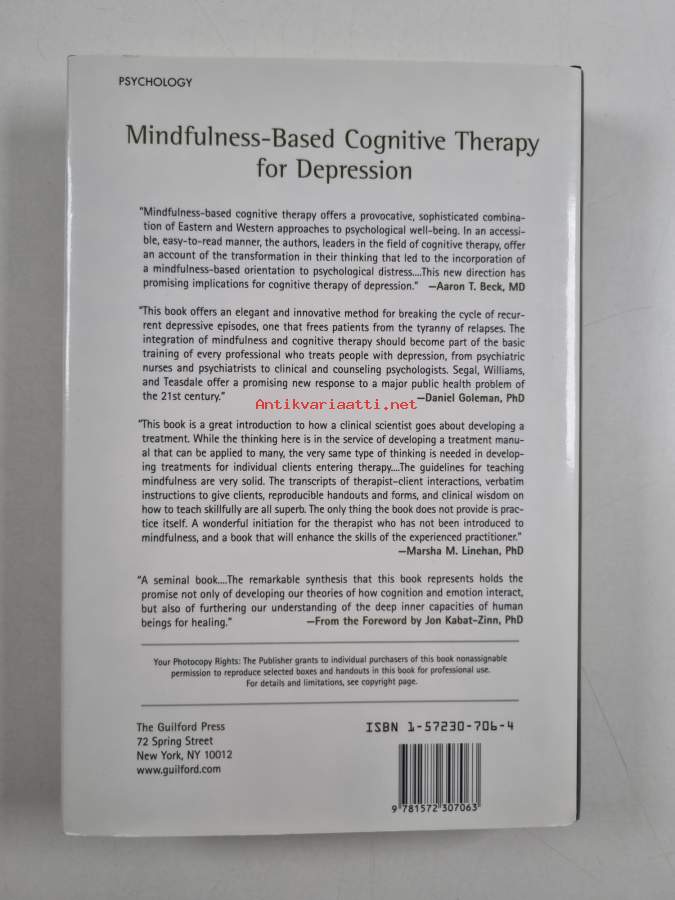 Muu(t) tekijä(t): Jon Kabat-Zinn, J. Mark G. Williams ym.Asiasanat: hoito, tunteet, psykoterapia, masennus, psyyke, kognitiivinen terapia, psykoterapi, psyket, känslor, Depression, Mental, Depression, Cognitive therapy, vård, kognitiv terapi