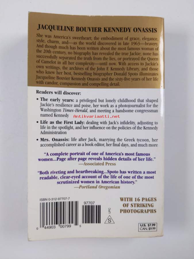 Jacqueline Kennedy, 4. painos. 1964. Runsaasti kuvitettu kirja JFK:n edustusvaimon elämästä ennen ja jälkeen salamurhan.