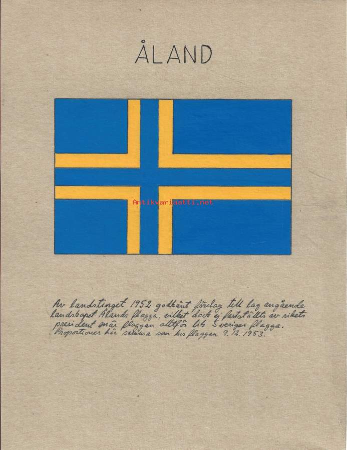 Åland - lippu alkuperäinen guassimaalaus pahville 25x19 cm ja seloste