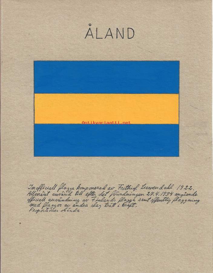 Åland - lippu alkuperäinen guassimaalaus pahville 25x19 cm ja seloste