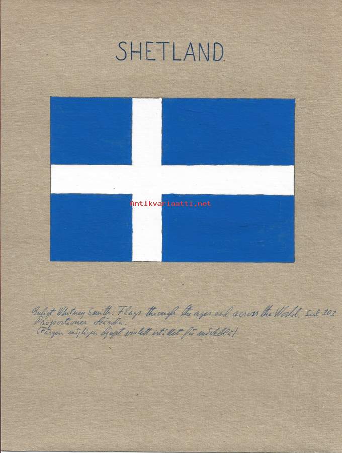 Shetland - lippu alkuperäinen guassimaalaus pahville 25x19 cm ja seloste