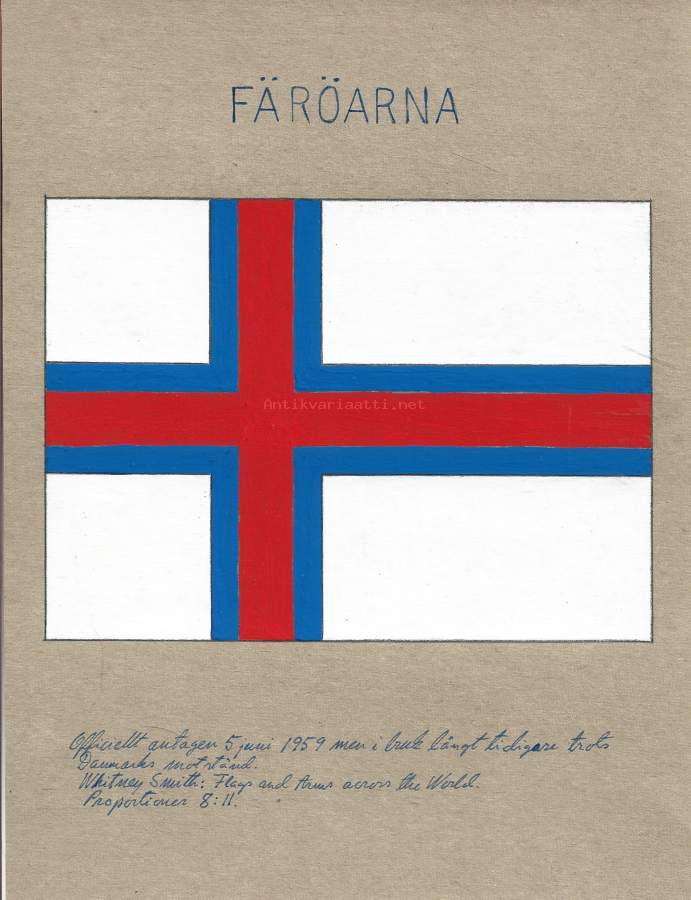 Färöarna - lippu alkuperäinen guassimaalaus pahville 25x19 cm ja seloste