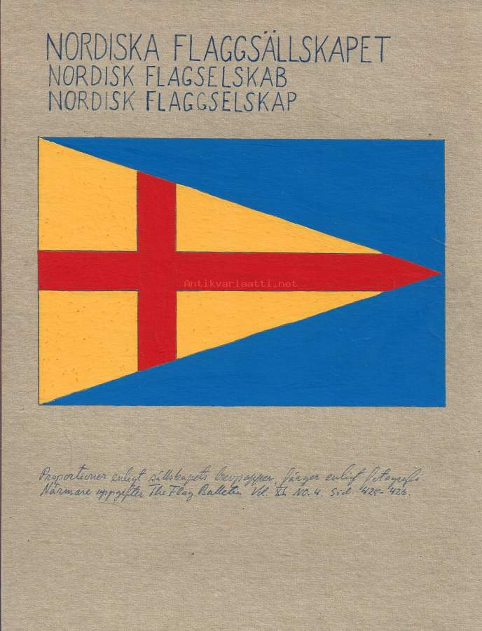 Nordiska Flaggsällskapet - lippu alkuperäinen guassimaalaus pahville 25x19 cm ja seloste