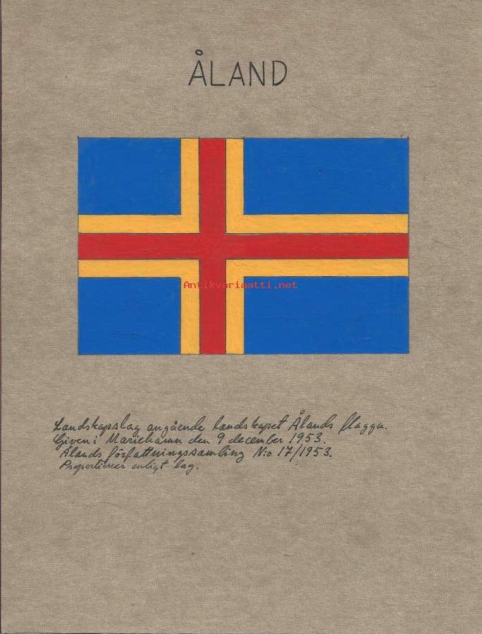 Ahvenanmaa Åland - lippu alkuperäinen guassimaalaus pahville 25x19 cm ja seloste