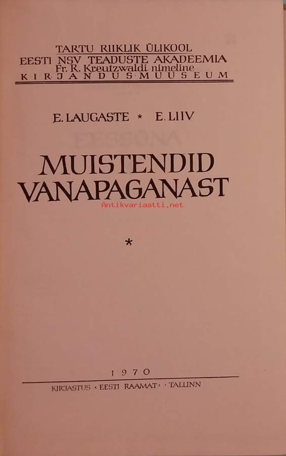 Kansanperinteen teoskeskittyy Vanapagana hahmoon – virolaisen kansanperinteen paholaisen, jättiläisen ja keppostelijan yhdistelmään. Kuvitettu. Dimensiot