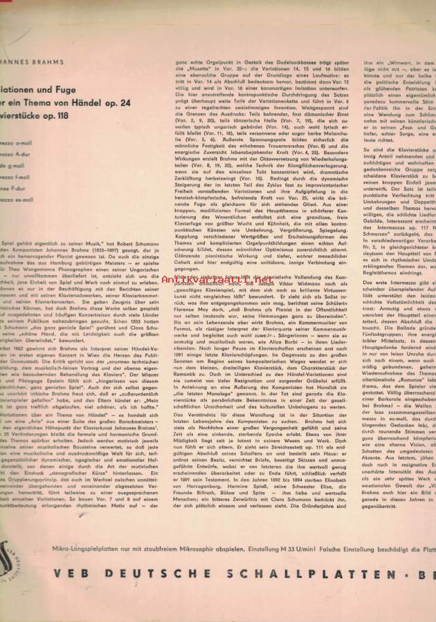 Variationen Und Fuge Über Ein Thema Von Händel Op. 24 / Klavierstücke Op. 118 - Johannes Brahms