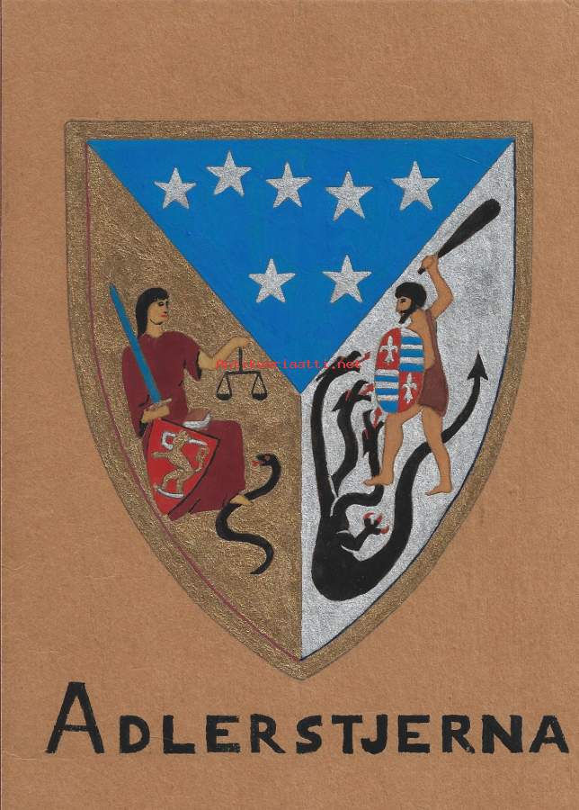 Adlerstjernasukuvaakuna alkuperäinen guassimaalaus pahville 22x16 cm ja takana seloste