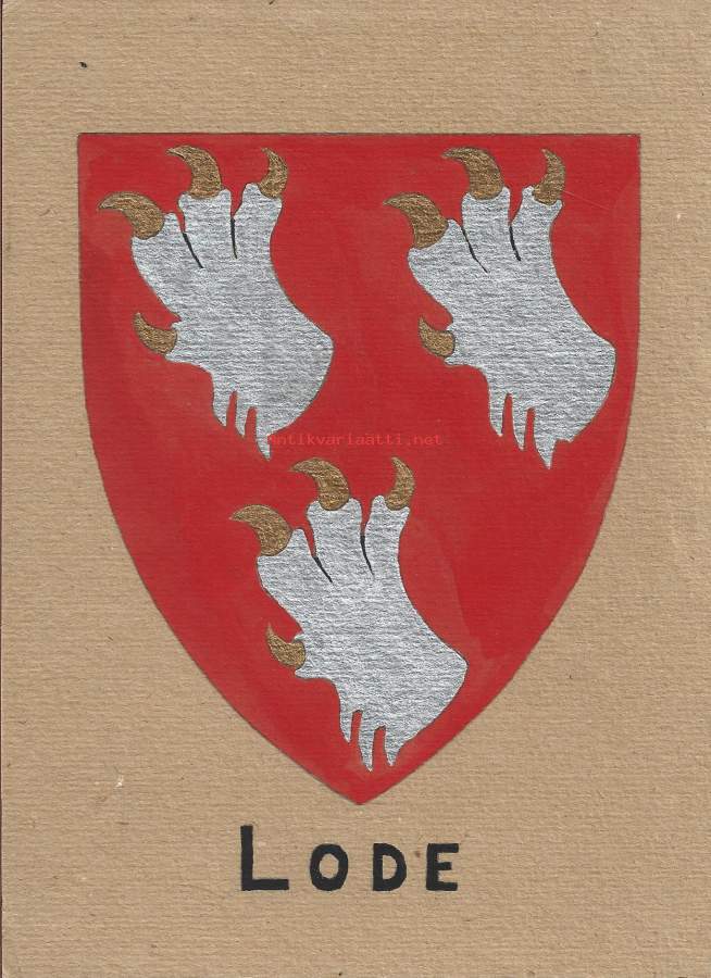 Lodesukuvaakuna alkuperäinen guassimaalaus pahville 22x16 cm ja takana seloste