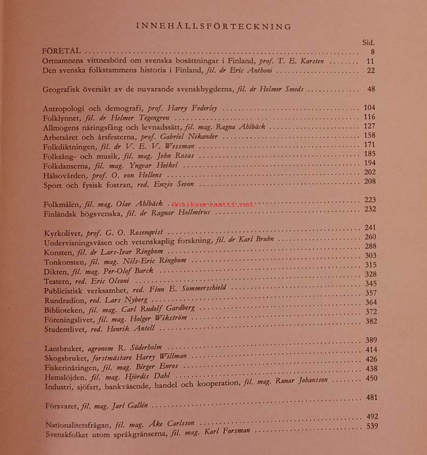 Teos on laaja kulttuurihistoriallinen katsaus Suomen ruotsinkieliseen väestöön ja sen kehitykseen. Kuvitettu. Dimensiot 25 ¤ 20 cm.