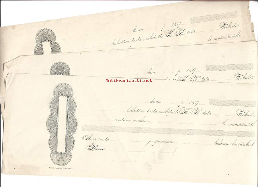 1800-luvun blankoja wekselilomakkeita 3 kpl erä - vekseli