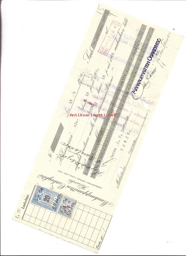Maakauppiaitten Oy / Suomen Pankki 1928 - vekseli