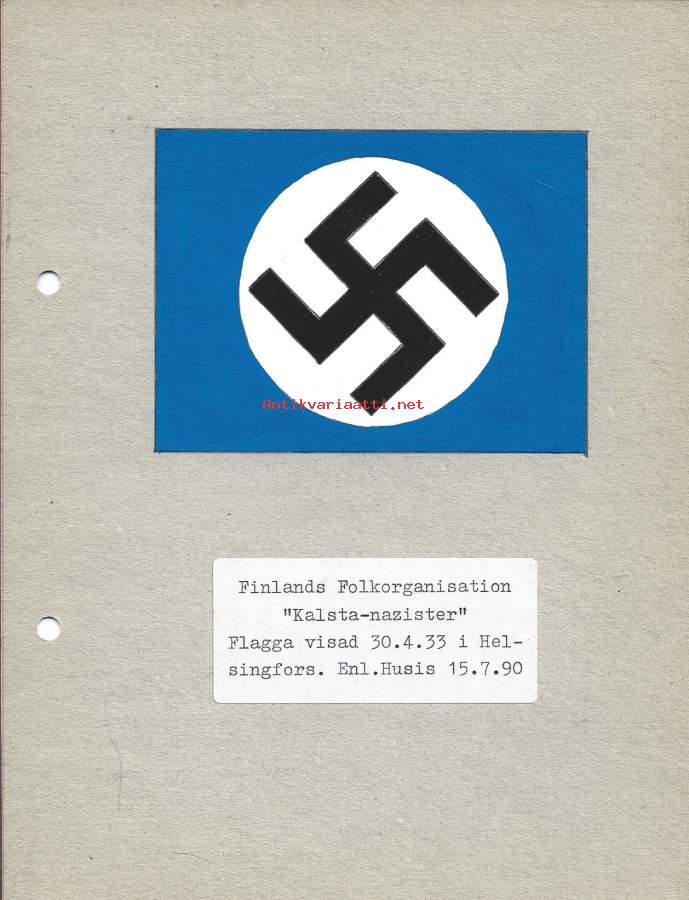 Finlands Folkorganisation "Kalsta-nazister 1933lippu alkuperäinen guassimaalaus pahville 22x16 cm ja seloste
