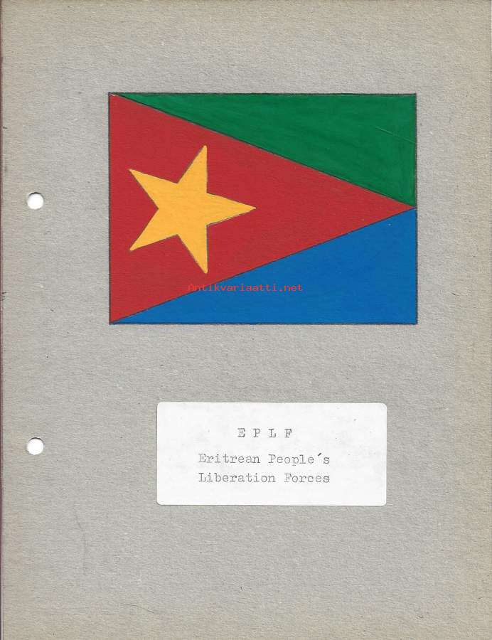 EPLF Eritrean Peple´s Liberation Forcelippu alkuperäinen guassimaalaus pahville 22x16 cm ja seloste