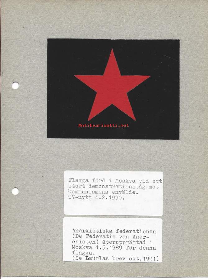 Anarkistiska federationlippu alkuperäinen guassimaalaus pahville 22x16 cm ja seloste