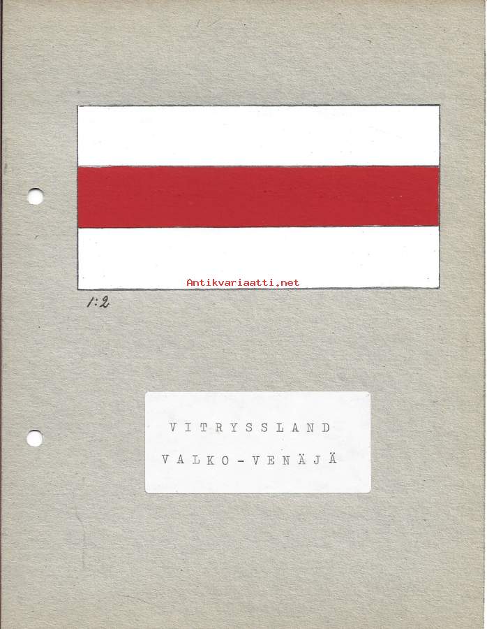 Valko-Venäjälippu alkuperäinen guassimaalaus pahville 22x16 cm ja seloste