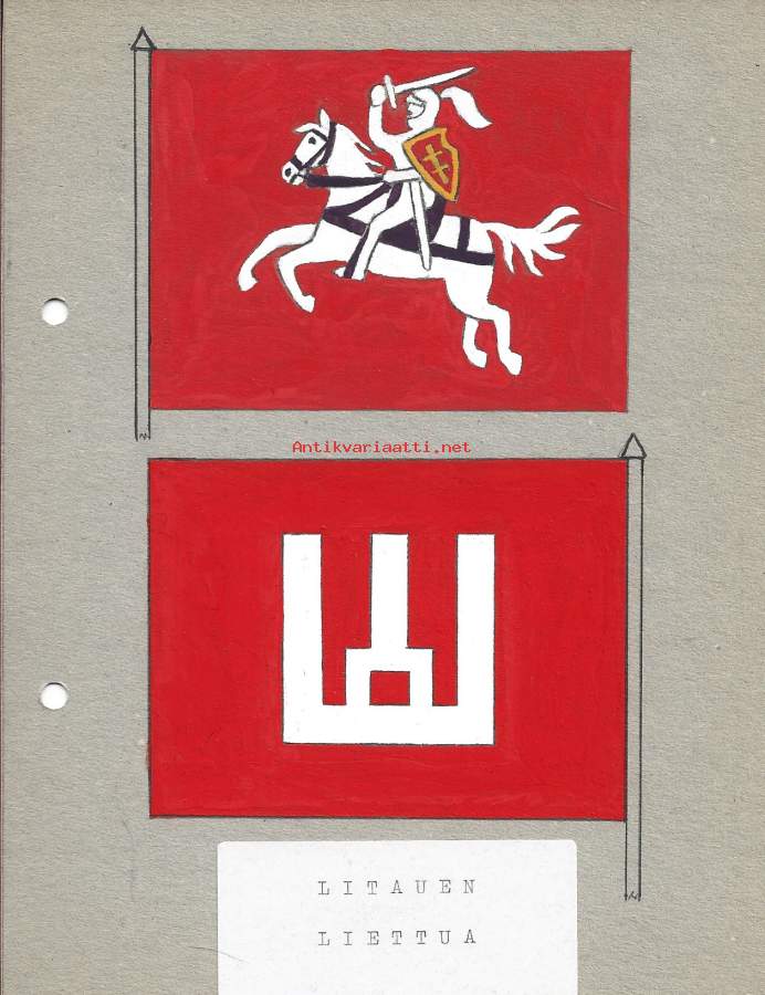 Liettualippu alkuperäinen guassimaalaus pahville 22x16 cm ja seloste