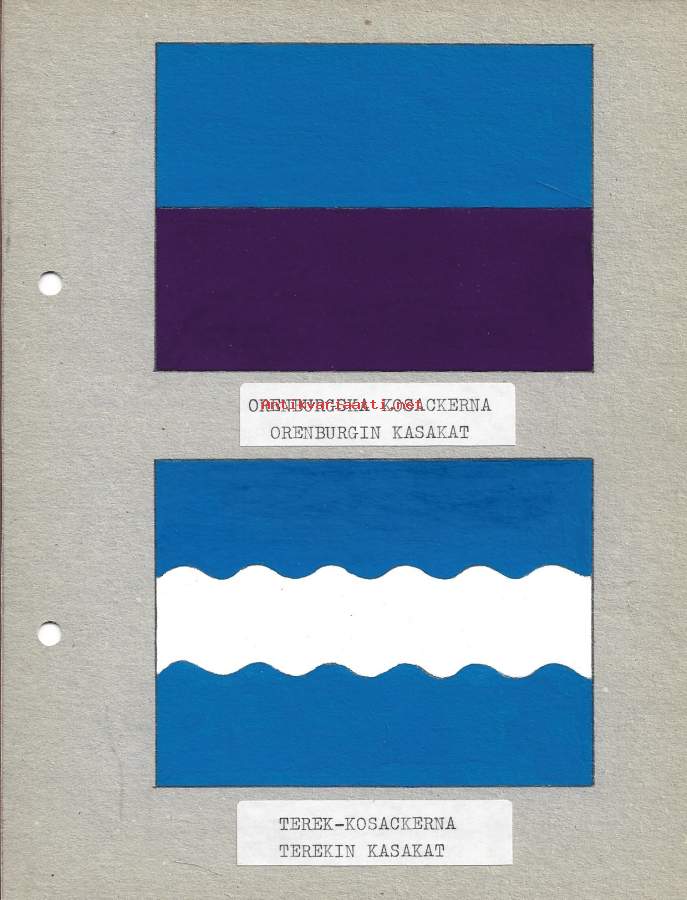Orenburgin Kasakat , Terekin Kasakatlippu alkuperäinen guassimaalaus pahville 22x16 cm ja seloste