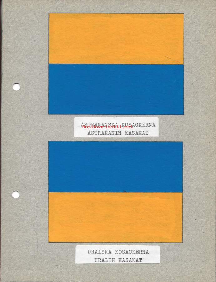Astrakanin Kasakat , Uralin Kasakatlippu alkuperäinen guassimaalaus pahville 22x16 cm ja seloste
