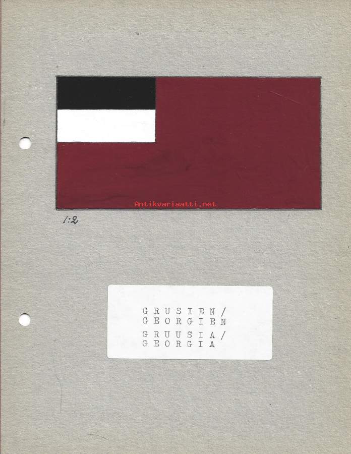 Gruusia / Georgialippu alkuperäinen guassimaalaus pahville 22x16 cm ja seloste