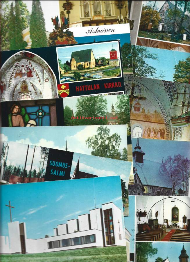 Suomalaisia kirkkokortteja n 25 kpl erä paikkakuntakortti, kirkkopostikortti kirkkokortti