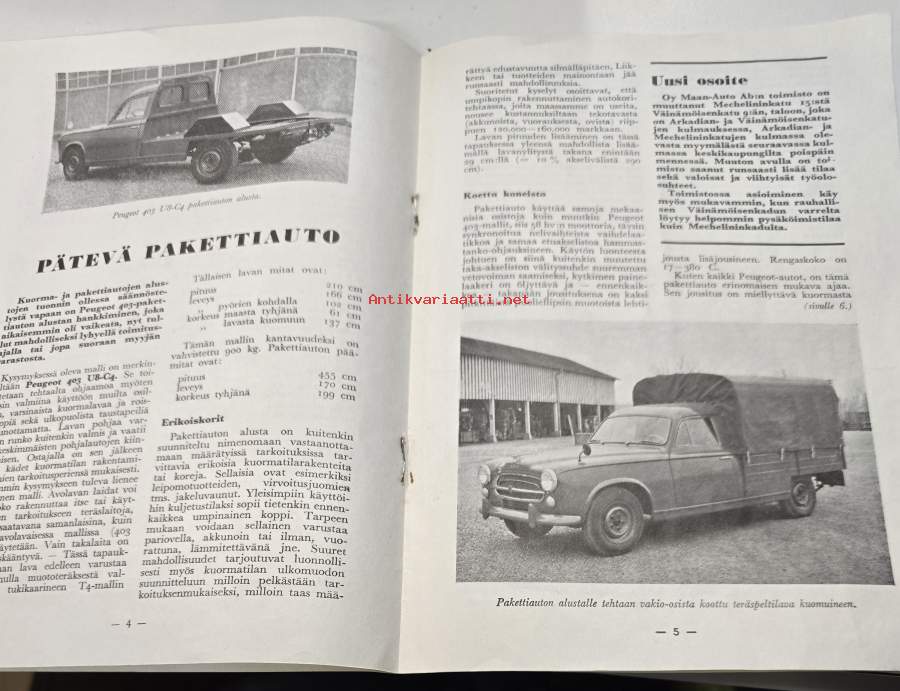 Peugeot 204 404 pohjaiset J7 pakettiautot vm. 1976 myyntiesite