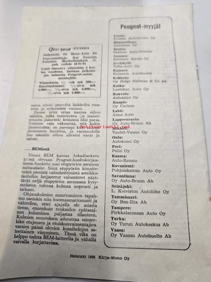 Peugeot uutisia 4 / 1958