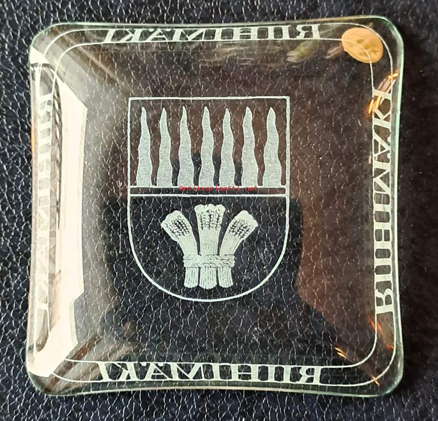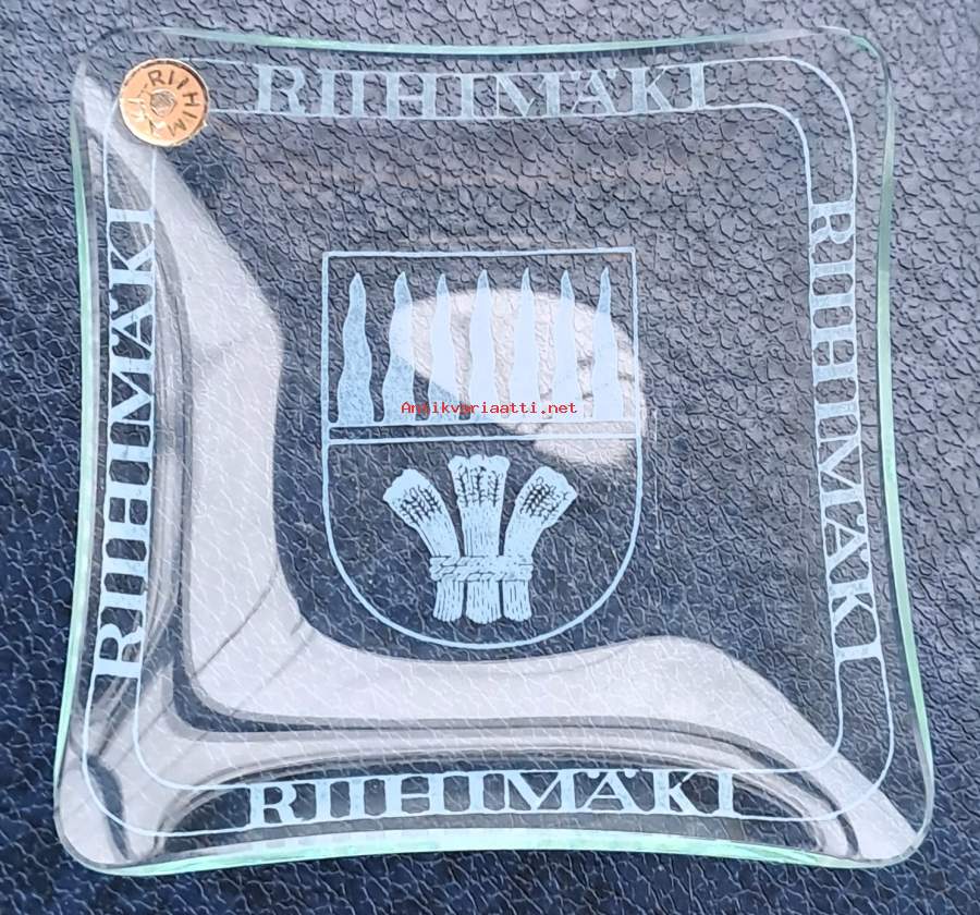 Riihimäen kaunis lasilautanen. Riihimäki kohokirjaimilla keskellä Halkaisija 12,5 cm. Kaunis esinen muuten vaan, mutta sopii naposteltava kipoksi