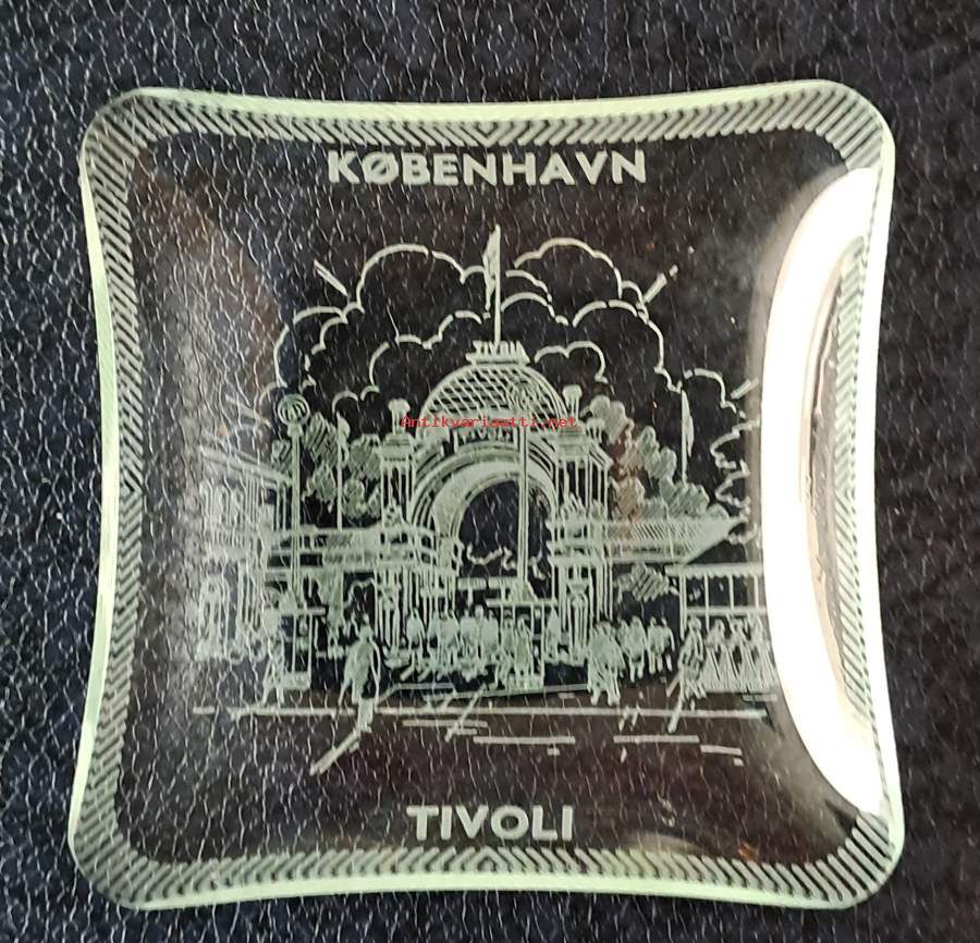 Köbenhavn Tivoli design mainostuhkakuppi - tuhkakuppi lasia 8,5x8,5 cm 1950-luku
