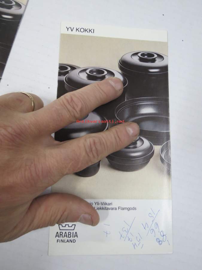 Arabia Kokki YV design Tapio Yli-Viikari -myyntiesite malli- ja mittatietoineen